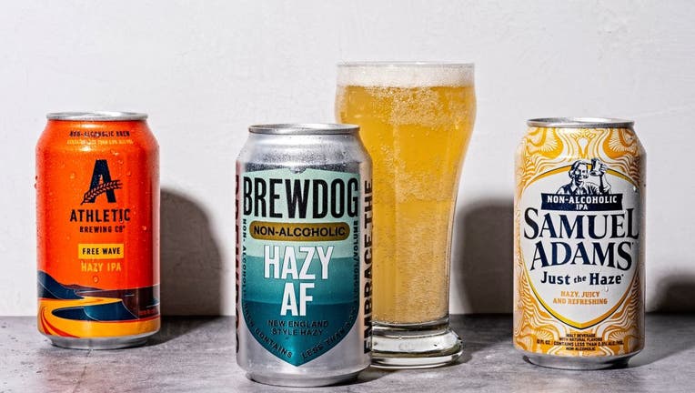 WASHINGTON, DC - MARCH 11: Group 3 "Hazy IPA" Non-alcoholic beers photographed for Food in Washington, DC on March 11, 2024. (Photo by Scott Suchman for The Washington Post via Getty Images; food styling by Lisa Cherkasky for The Washington Post via