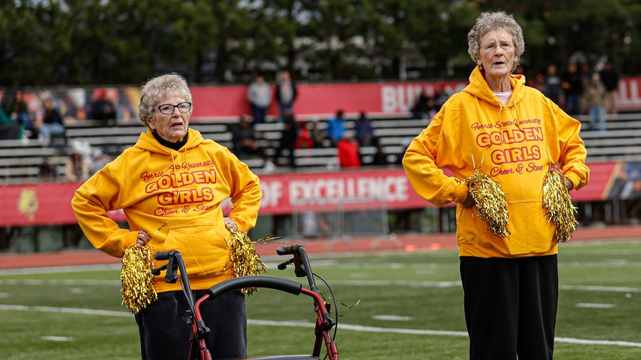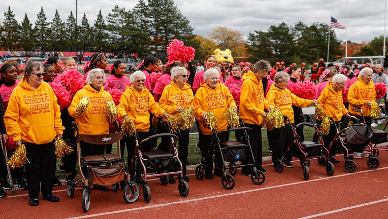 Michigan college's stunt team welcomes 'Golden Girls' from assisted living facility to cheer on field