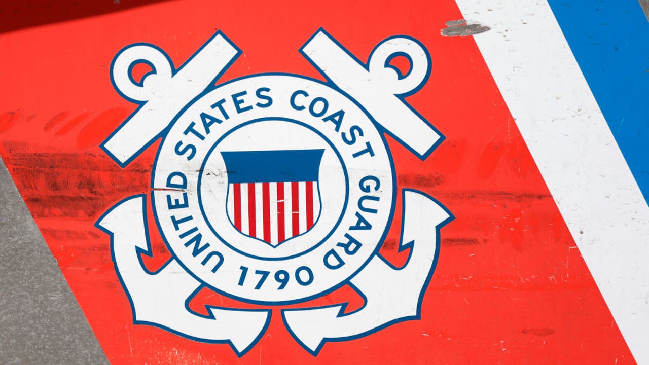SAN DIEGO, CALIFORNIA - SEPTEMBER 28: A United States Coast Guard logo is displayed on a rescue boat on September 28, 2024 in San Diego, California. (Photo by Kevin Carter/Getty Images)