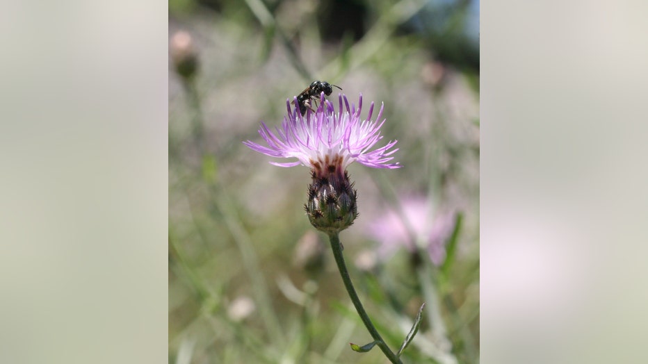 While the knapweed has been shown to be a popular choice for native pollinators, the plant has out-competed other native plants, reducing biodiversity. It's also has a more insidious quality because it produces chemicals that can inhibit growth nearby.