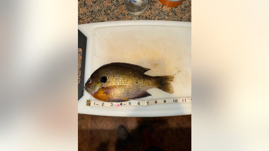 Sunfish — 12.50 inches long, caught in Sand Lake in Clare County
