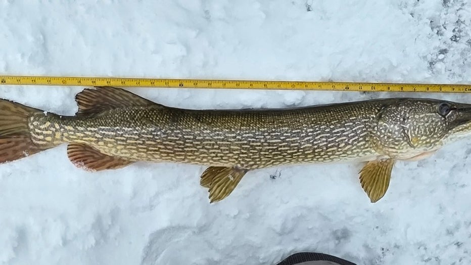Northern Pike — 48 inches long, caught in Lake Michigan in Delta County