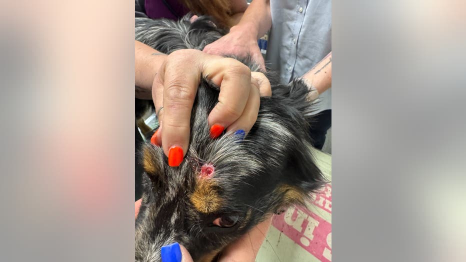 Daisy the dog's injury - the bullet ricocheted off her head.