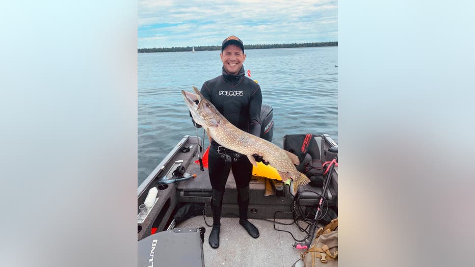 Michigan Spearfishing Association President Jon Durtka shows off a northern pike he caught. Photo via Michigan Spearfishing Association.