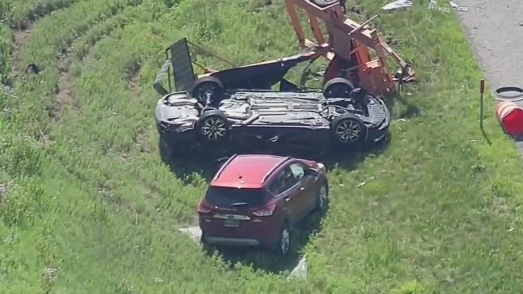 They later say at some point the car swerved into the middle lane and hit a vehicle, with both losing control and hitting a third vehicle.
