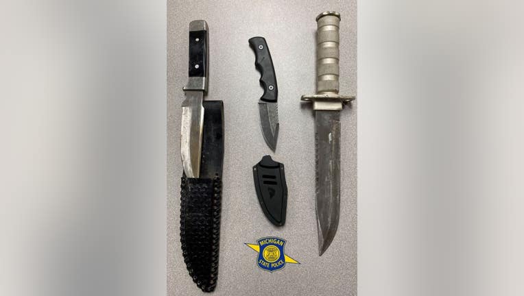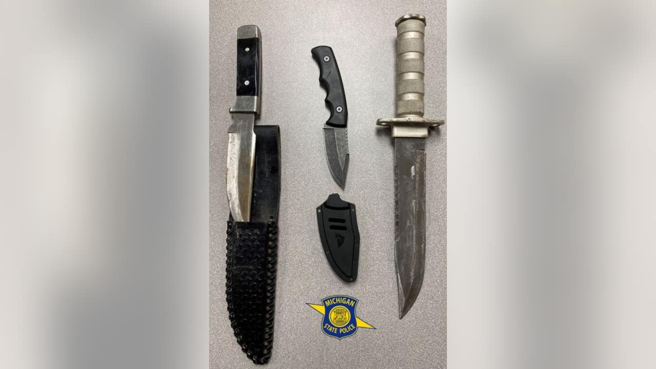 When officers asked the man to produce a license, he first stated he had left it at home. At that time, troopers observed a large, fixed blade knife in the center console.