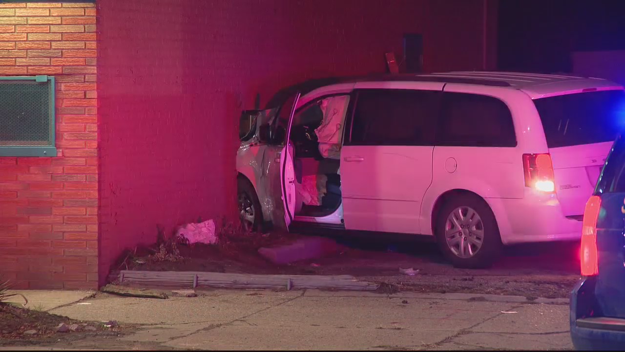 Police: Man intentionally ran down his family in minivan before crashing into building in Detroit