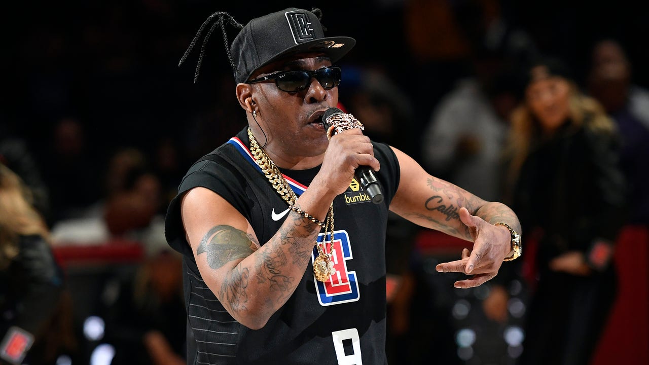 Rapper Coolio performs during the halftime of Golden State Warriors and Los Angeles Clippers basketball game at Staples Center in 2019. (Photo by Kevork Djansezian/Getty Images)