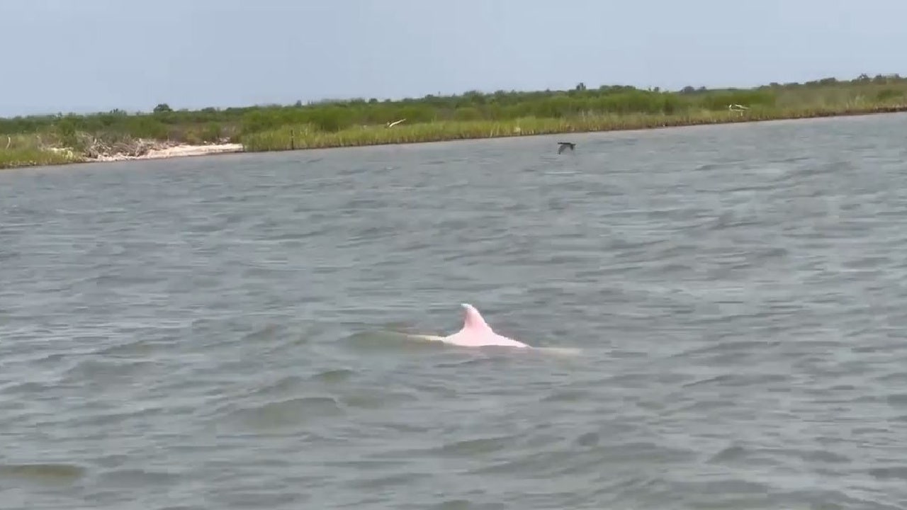 Gustin, from Houston, told FOX 35 News he was fishing in the Old River area of Cameron Parish in Louisiana on July 12 when he spotted a pink dolphin swimming just below the surface.