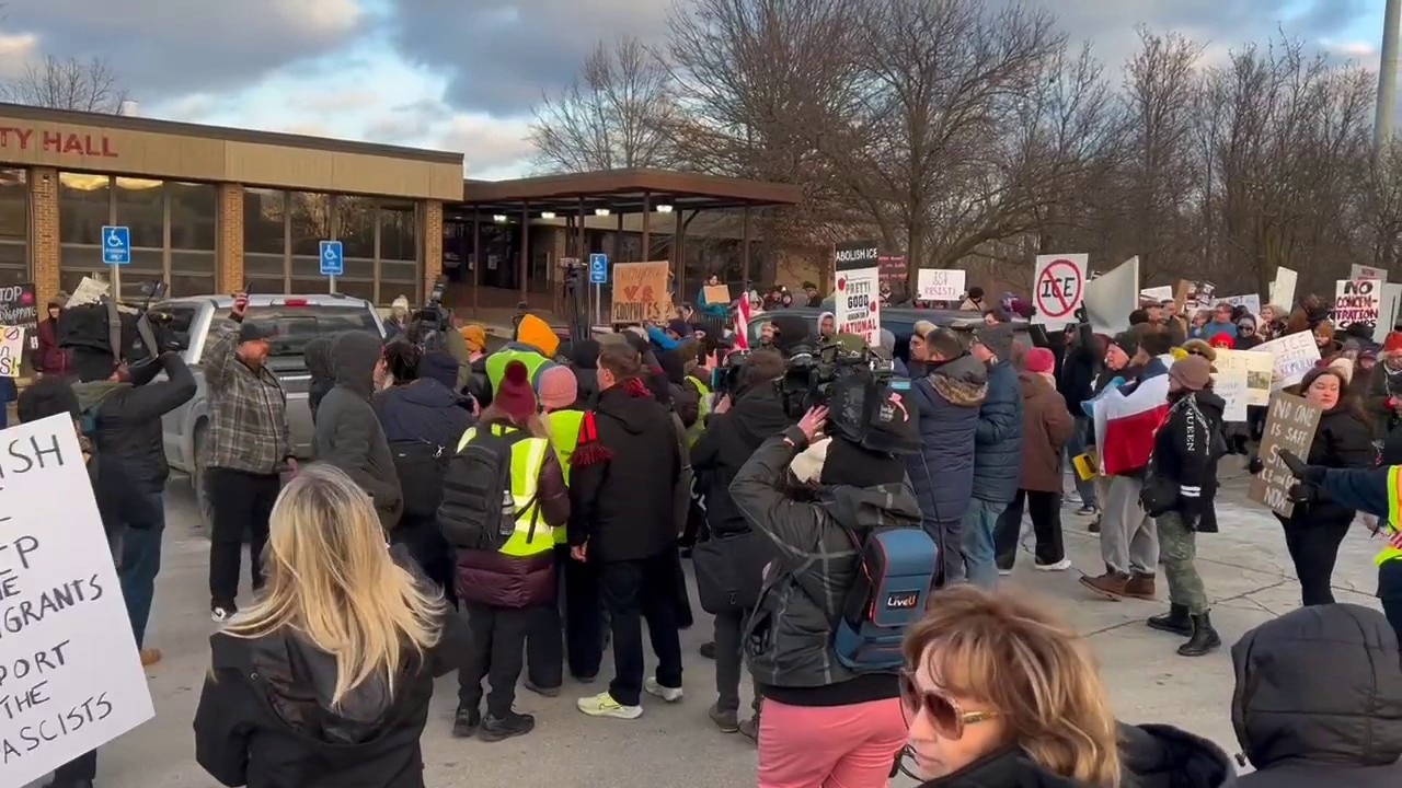 Anti-ICE protesters clashed with counter demonstrators outside of Romulus City Hall as lawmakers prepared for a city council meeting.