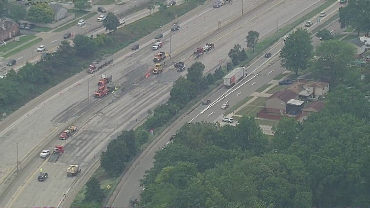 I-696 cleanup continues at 11 Mile after semi-truck crash through median wall