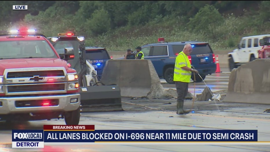 FOX 2 - A jack-knifed semi-truck crash caused the closure of I-696 at 11 Mile in both directions Thursday morning.