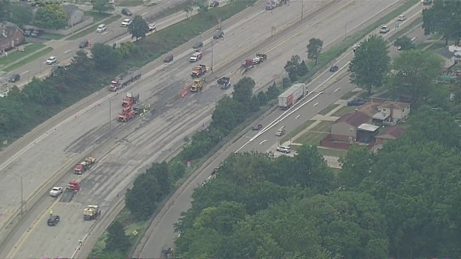 Crews are at work trying to cleanup a crash with a semi-truck that has caused a total closure of the freeway.