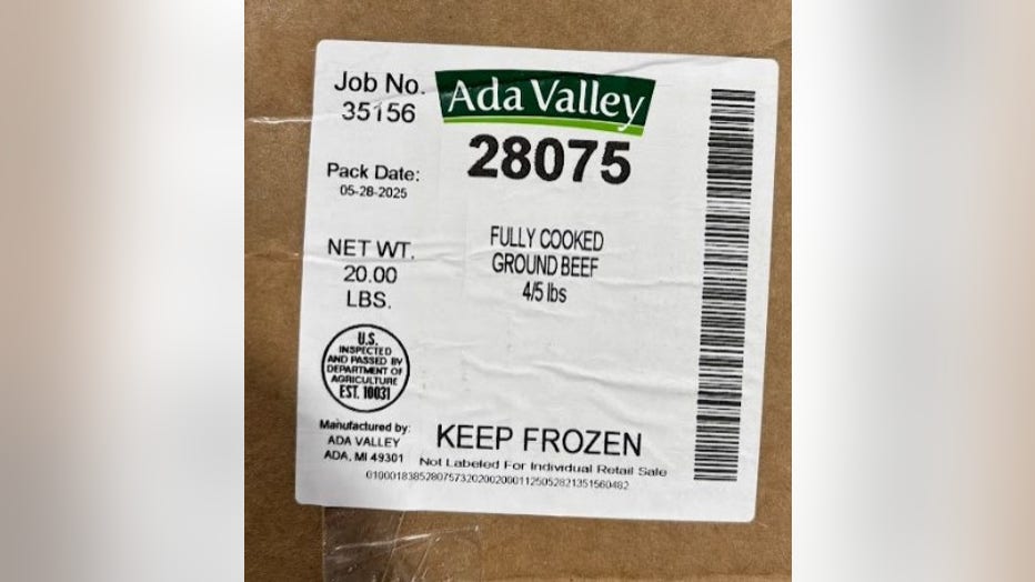 The product that was recalled reads "Ada Valley FULLY COOKED GROUND BEEF" which were packaged in 20-pound cardboard box cases.