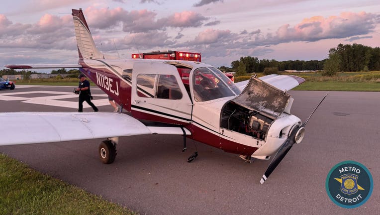 When the engine began smoking, the pilot instructor told the trainee to shut off the engine and attempt an emergency landing at nearby Romeo State Airport around 7:45 p.m. During the landing, the front landing gear broke off, leading to the plane skidding on the runway.
