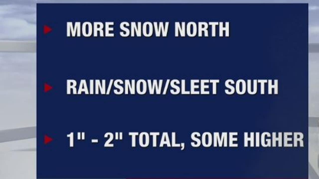 Rain, sleet, and snow for Monroe, South Monroe, Adrian, Temperance. To our north in the colder air, snow accumulating to 1 to 2 inches with some areas north (think Pontiac) receiving near 3 inches.