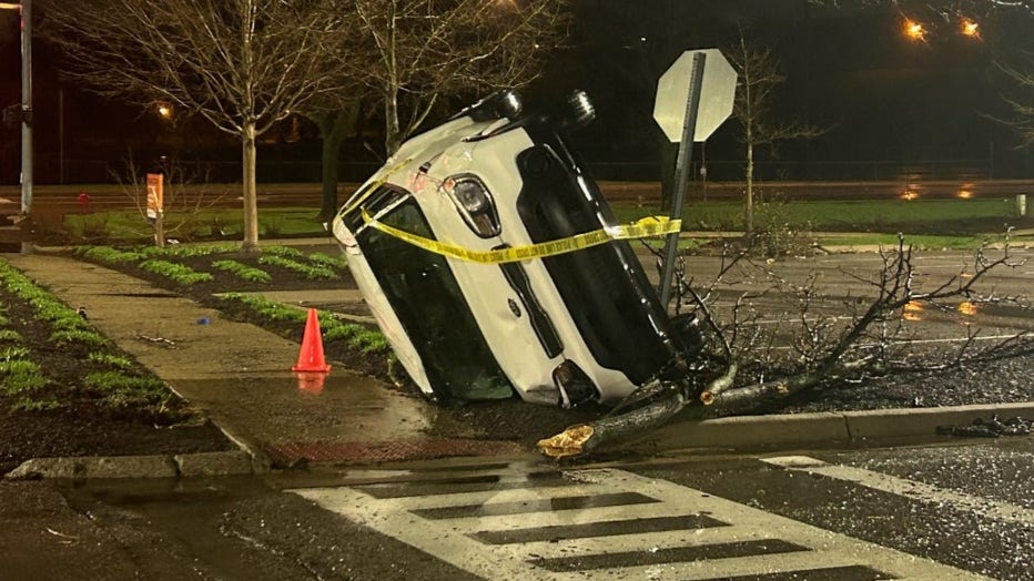 Lincoln Park storm damage: Snapped trees, crushed vehicles