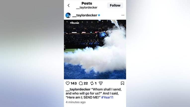 Taylor Decker posted on Instagram a photo of his running out on the field with #Year11.