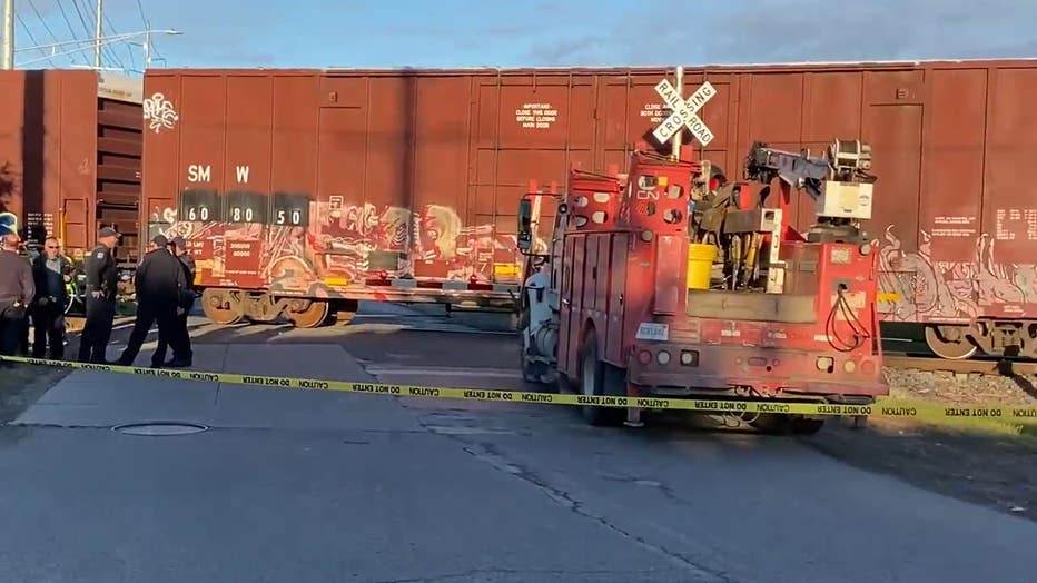 The derailment happened around 7:30 a.m. when fire and police department crews were dispatched to Schoenherr and Stephens. It's unclear what caused the derailment, but officials have confirmed no injuries occurred.
