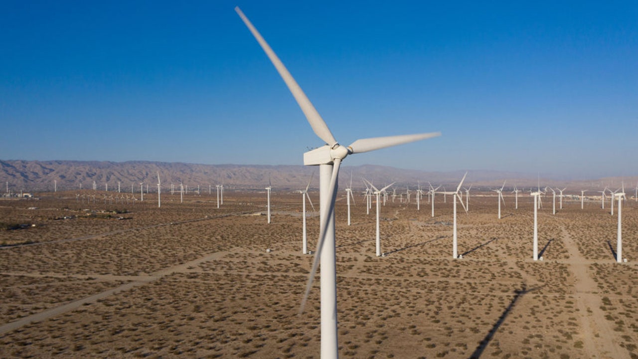 FILE - Wind turbines at the San Gorgonio Pass wind farm in Whitewater, California, U.S., on Thursday, June 3, 2021.