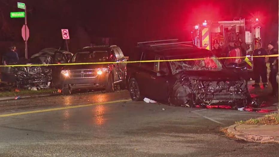 Violent crash leaves mangled vehicles outside haunted house on Detroit's east end