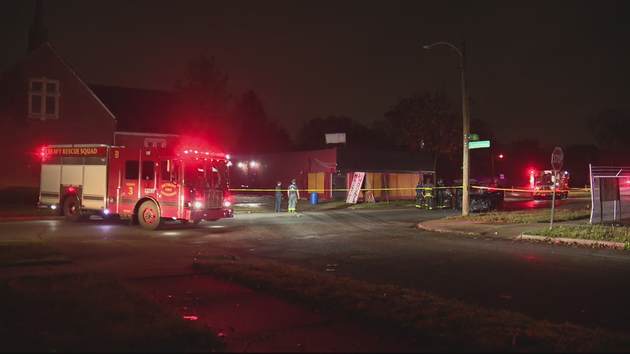 Car crash in front of haunted house on Detroit's east side leaves 2 mangled cars