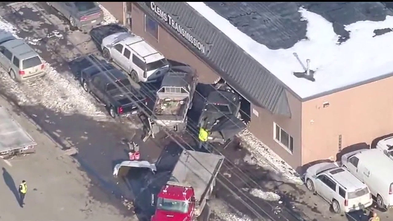 Dashcam video was given to FOX 2 by Stephen Gmeiner. He says he was driving northbound on Groesbeck Highway near 14 Mile when he saw a box truck cross a few lanes, with no turning signals, and slam into a building.