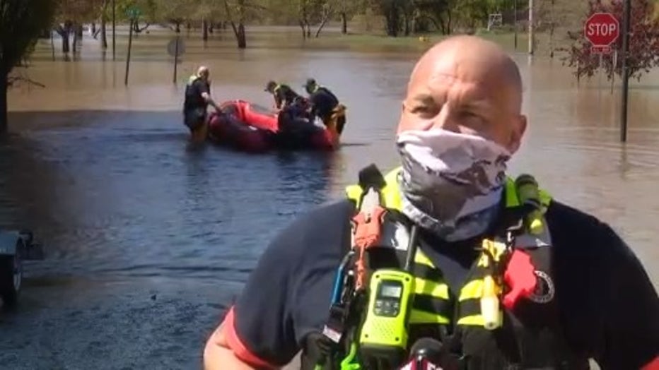Clawson is one of nine Rochester Hills firefighters in Midland transporting fuel by boat to the generators that are powering the pumping stations.