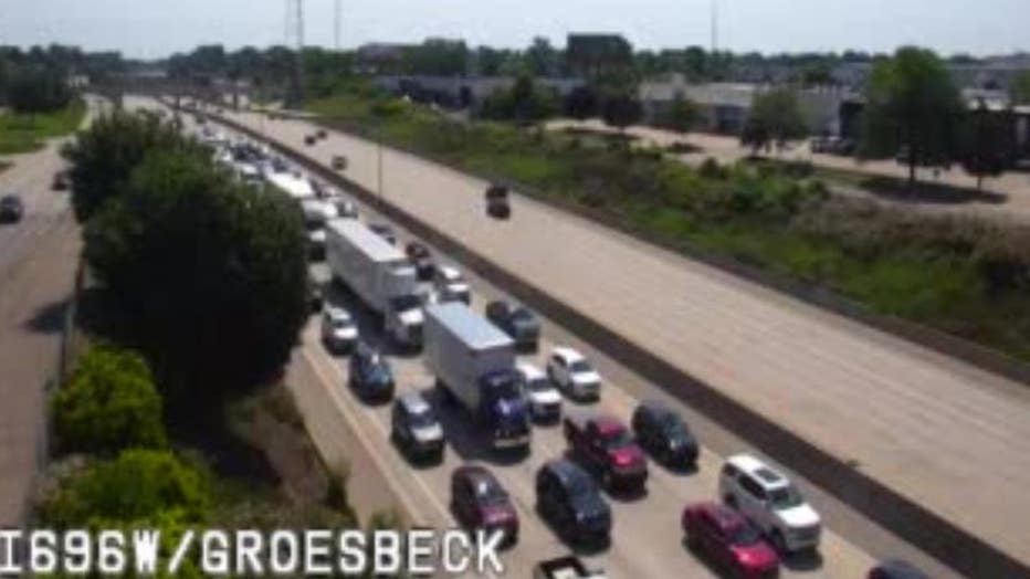 WARREN, Mich. (FOX 2) - All lanes of westbound I-696 are closed at Groesbeck in Warren for a crash Monday morning.