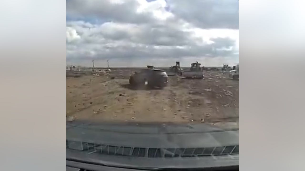 The winding chase goes across the dump with responding police swarming the area before she returns to the only way in or out of the site, at the front gate at 28800 Clark Road.