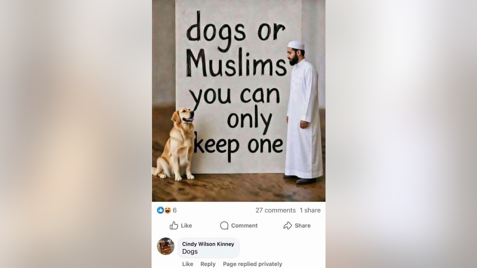 The post on Facebook was a meme with the statement: "dogs or Muslims…you can only keep one."