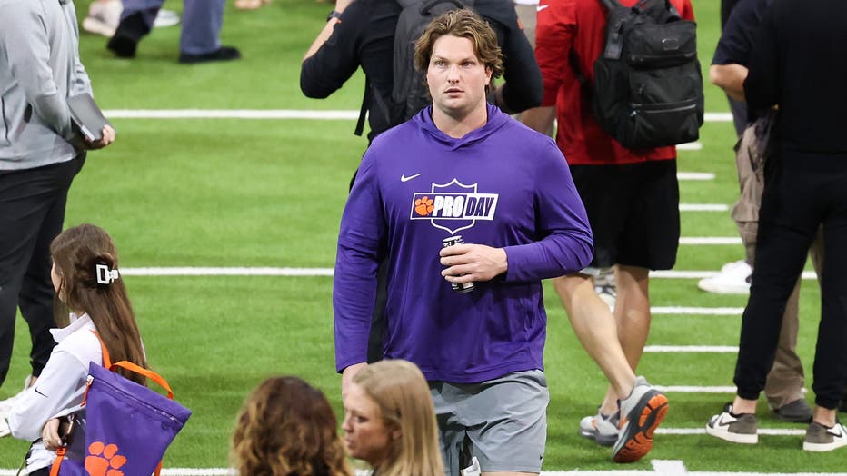 CLEMSON, SOUTH CAROLINA - MARCH 12: Blake Miller #78 of the Clemson Tigers walks on the field before Pro Day at Allen N. Reeves Football Complex on March 12, 2026 in Clemson, South Carolina. (Photo by Katie DeVaney/Getty Images)
