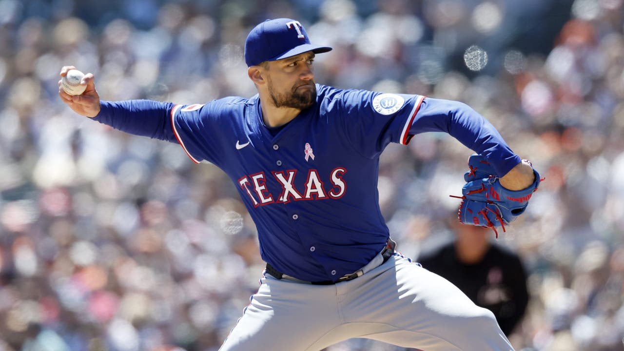 DETROIT, MI - MAY 11: Nathan Eovaldi #17 of the Texas Rangers pitches against the Detroit Tigers during the second inning at Comerica Park on May 11, 2025 in Detroit, Michigan. (Photo by Duane Burleson/Getty Images)