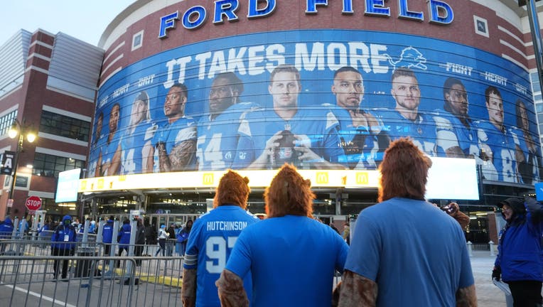 DETROIT, MICHIGAN - JANUARY 18: Fans enter Ford Field prior to the NFC Divisional Playoff between the Washington Commanders and Detroit Lions on January 18, 2025 in Detroit, Michigan. (Photo by Nic Antaya/Getty Images)