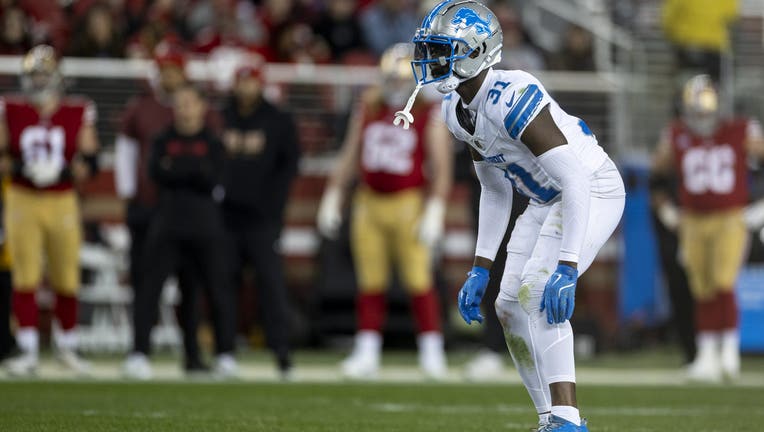 SANTA CLARA, CALIFORNIA - DECEMBER 30: Kerby Joseph #31 of the Detroit Lions looks on during an NFL Football game against the San Francisco 49ers at Levi's Stadium on December 30, 2024 in Santa Clara, California. (Photo by Michael Owens/Getty Images)