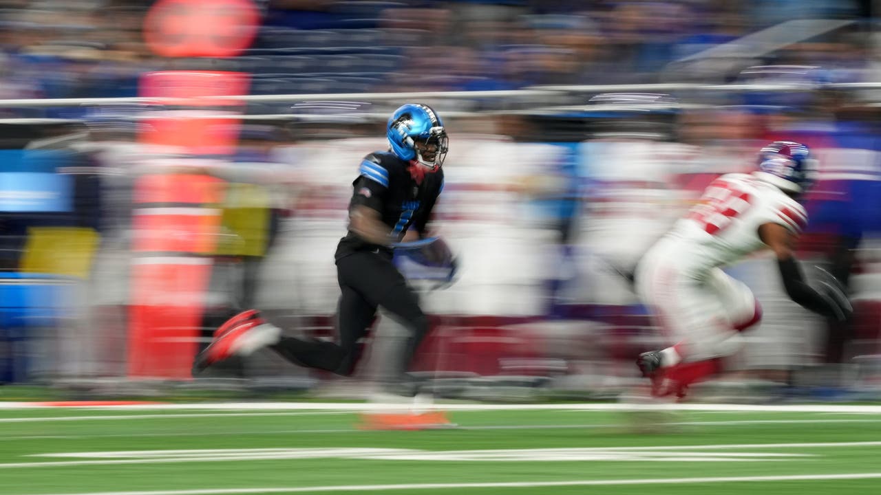 Detroit took advantage. Jake Bates kicked a 59-yard field goal that matched his career high with 28 seconds left, giving Jared Goff another opportunity to put the ball in Gibbs’ hands.