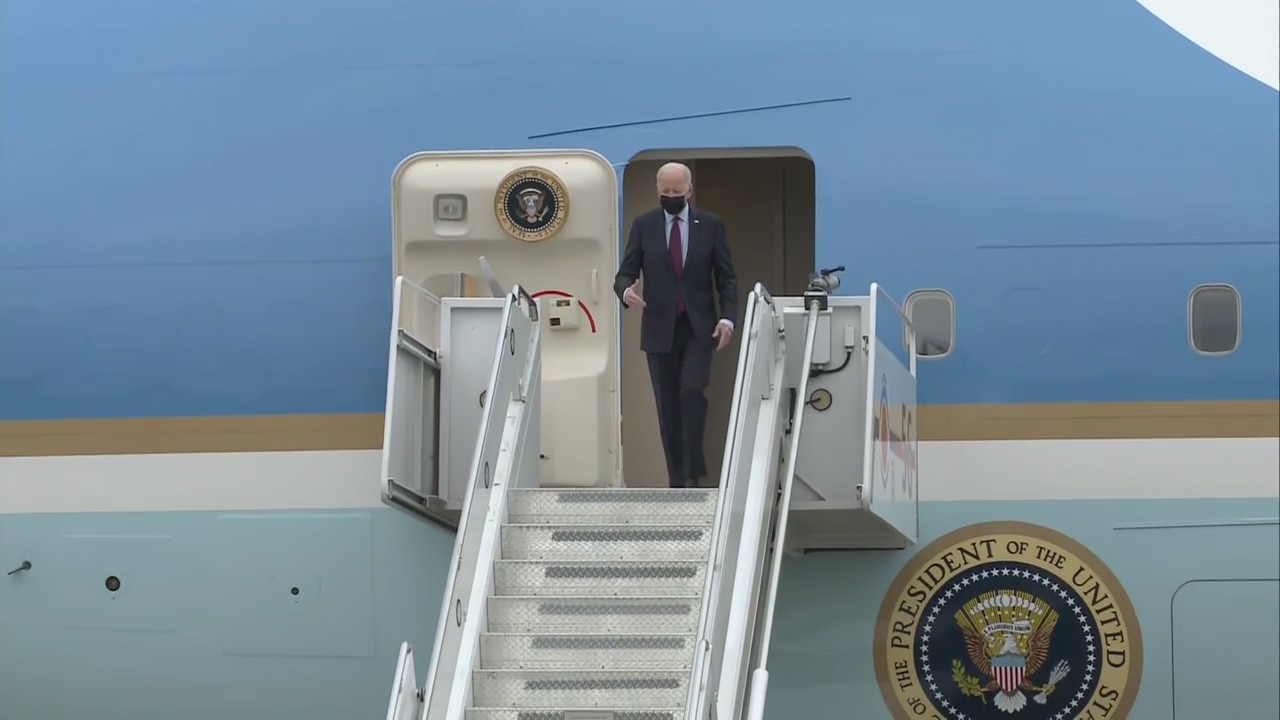 President Joe Biden arrived in Romulus on Wednesday, ahead of his visit to General Motors' new Factory ZERO electric vehicle assembly plant in Detroit