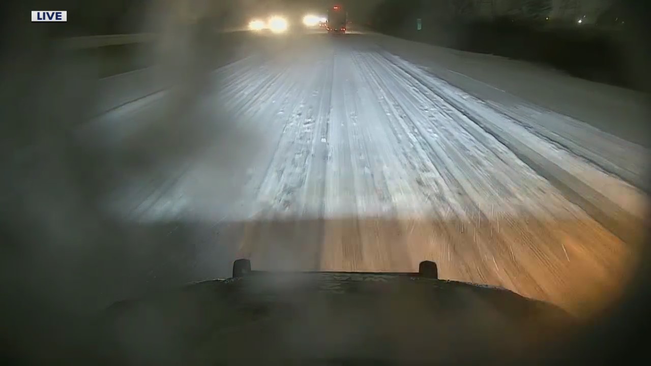 Road report from I-75 where ice lies beneath snow covered lanes