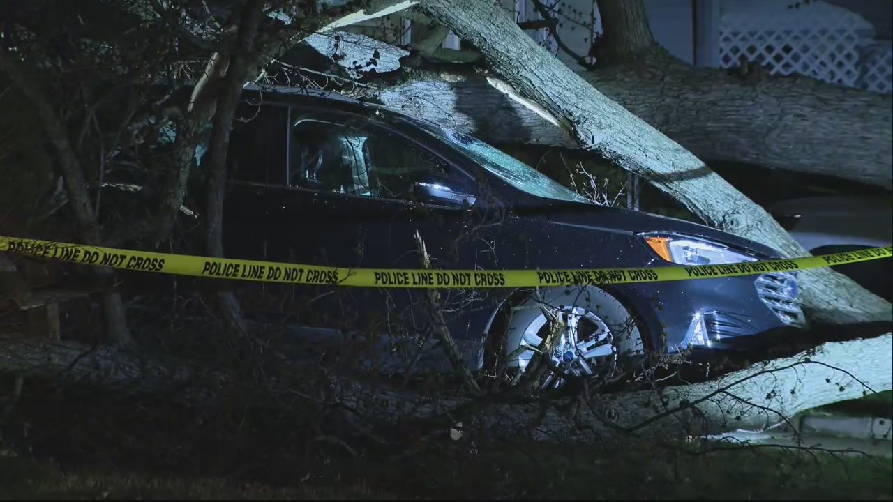 Strong winds knock tree onto vehicle in Dearborn