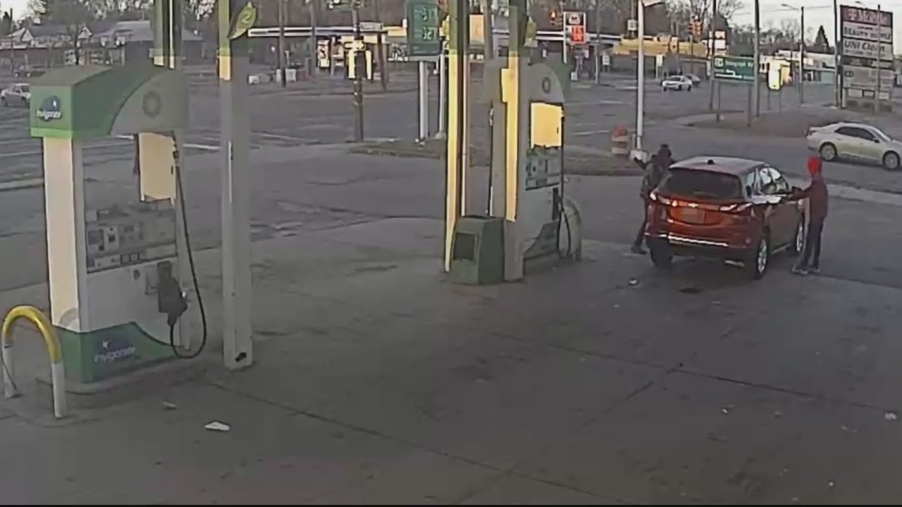 Surveillance video shows man, teen carjack woman on Detroit's west side