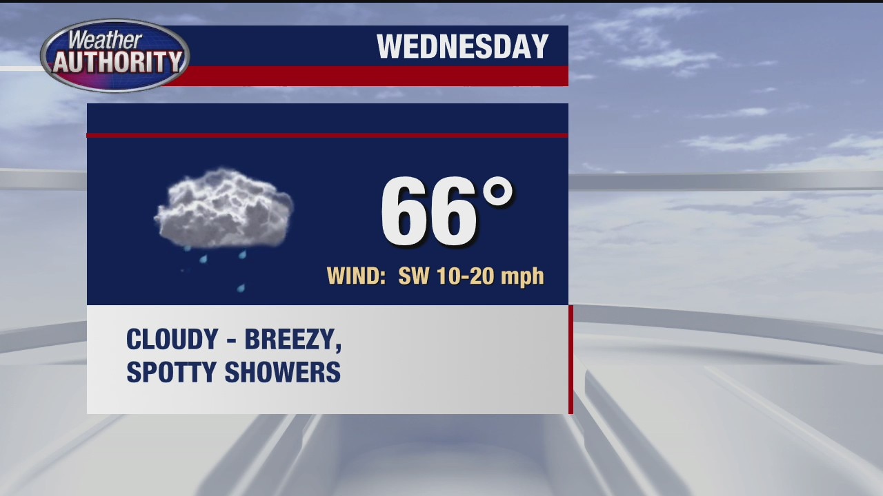 Spotty showers expected Wednesday; mild weather Thursday, Friday