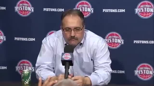 Pistons' Head Coach Stan Van Gundy and players Reggie Jackson & Andre Drummond talk following their win over the 76ers.