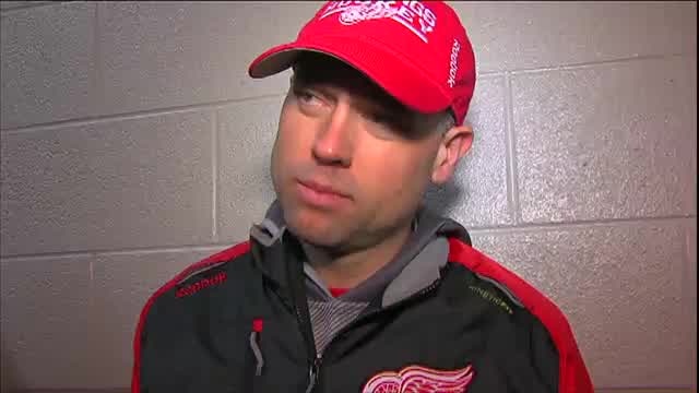 Red Wings' Head Coach Jeff Blashill & players Jonathan Ericsson, Dylan Larkin & Andreas Athanasiou talk following practice at University Liggett School as they prepare for their Stadium Series game against the Avalanche on Saturday.