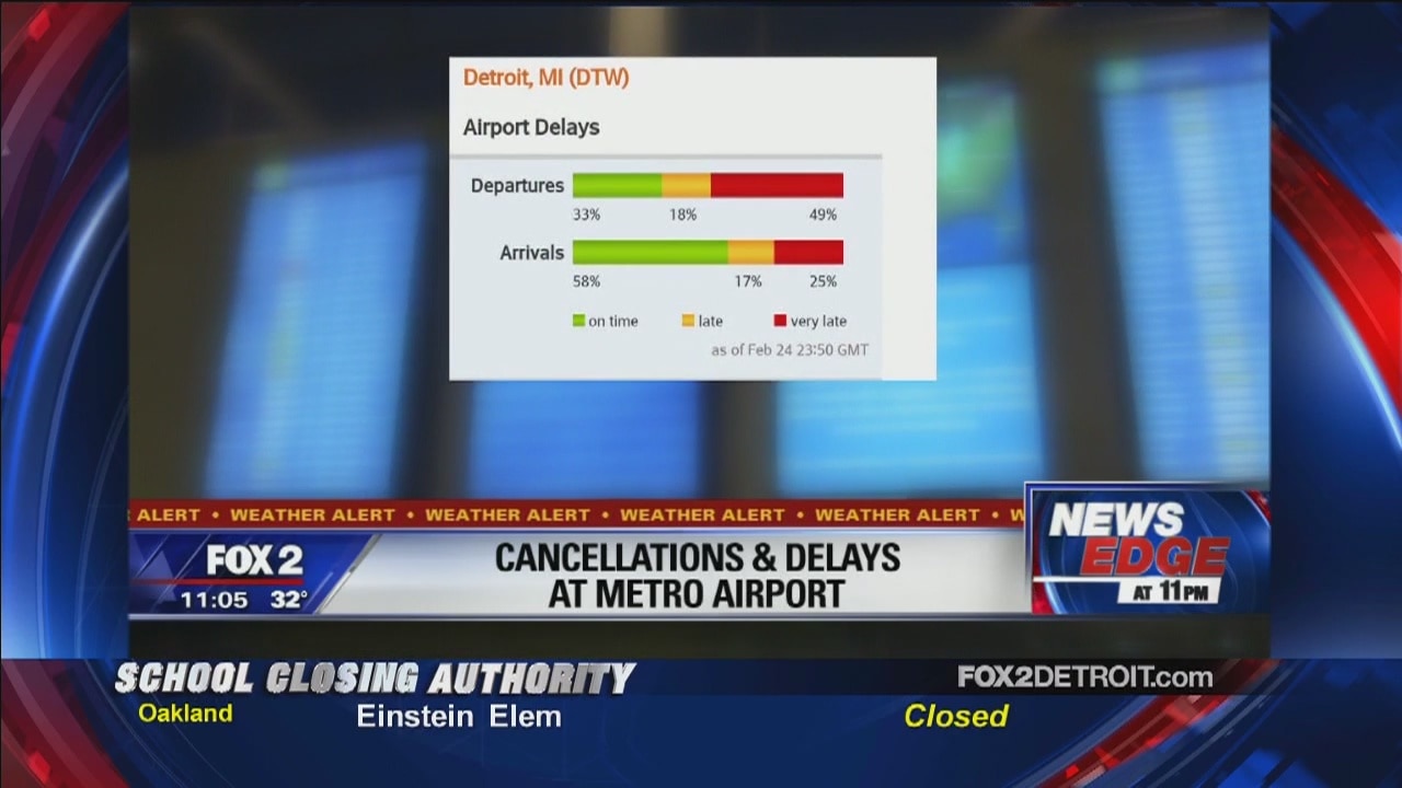 The Wednesday winter storm caused flight cancellations and delays at Detroit Metro Airport.