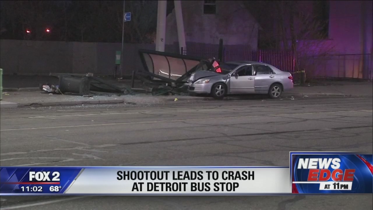 A shootout sent five people to the hospital and this is how it ended -a man behind the wheel of this honda accord driving into a bus stop.