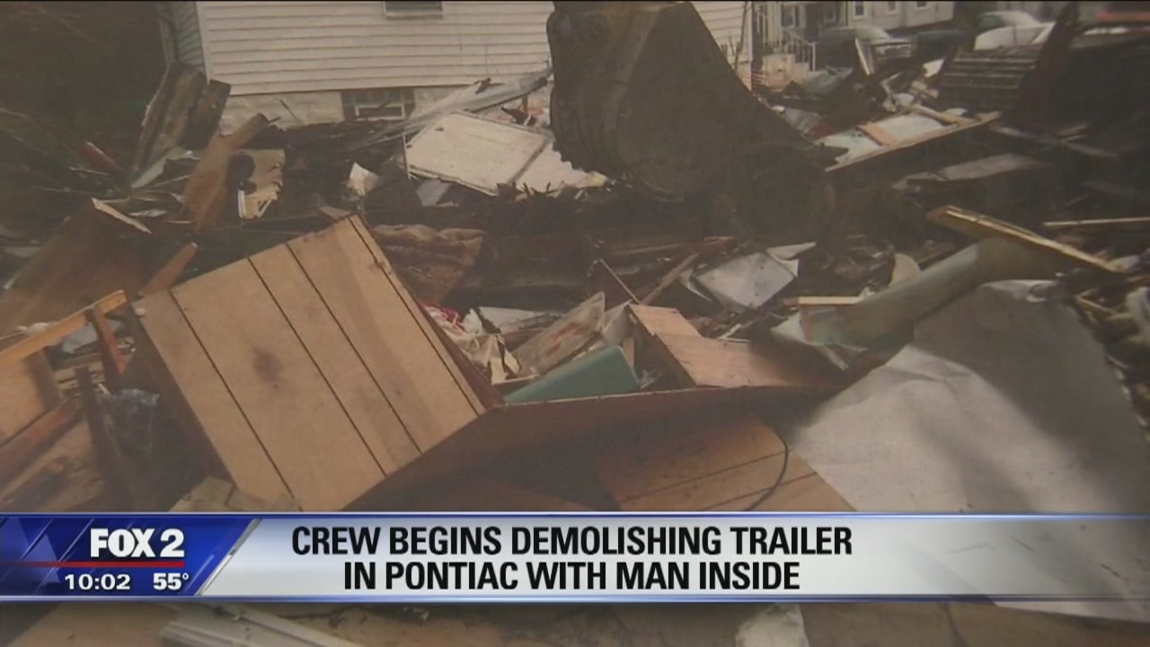 Crew begins demolishing trailer with man inside