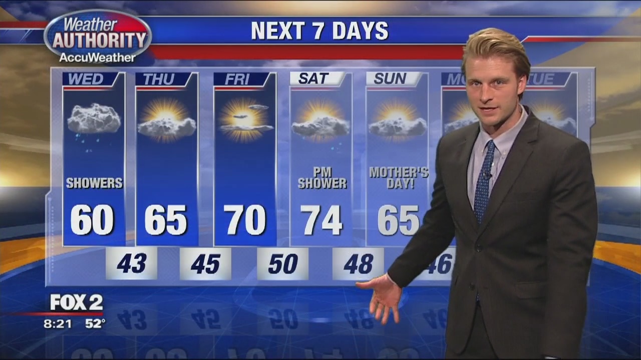 Showers and clouds will knock our temperatures down a notch today. High temps in the upper 50's/low 60's
