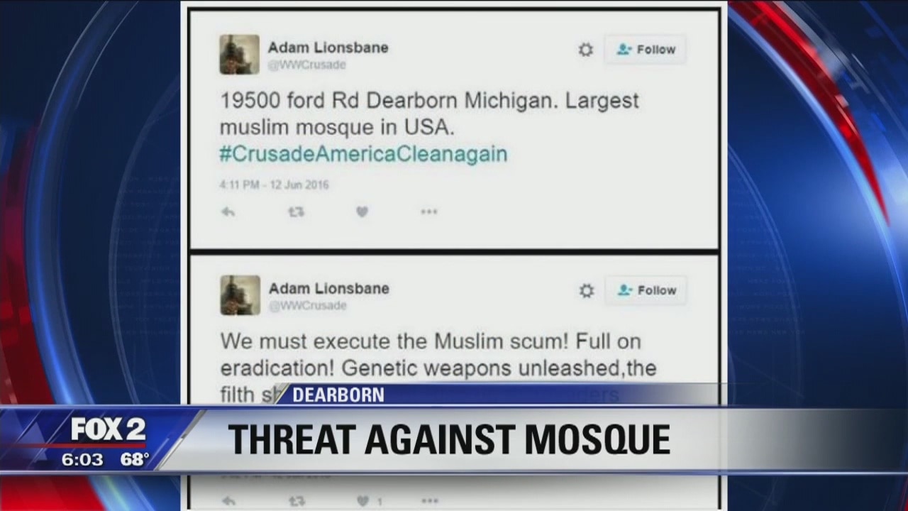 Twitter threats to execute Muslims at Dearborn mosque investigated