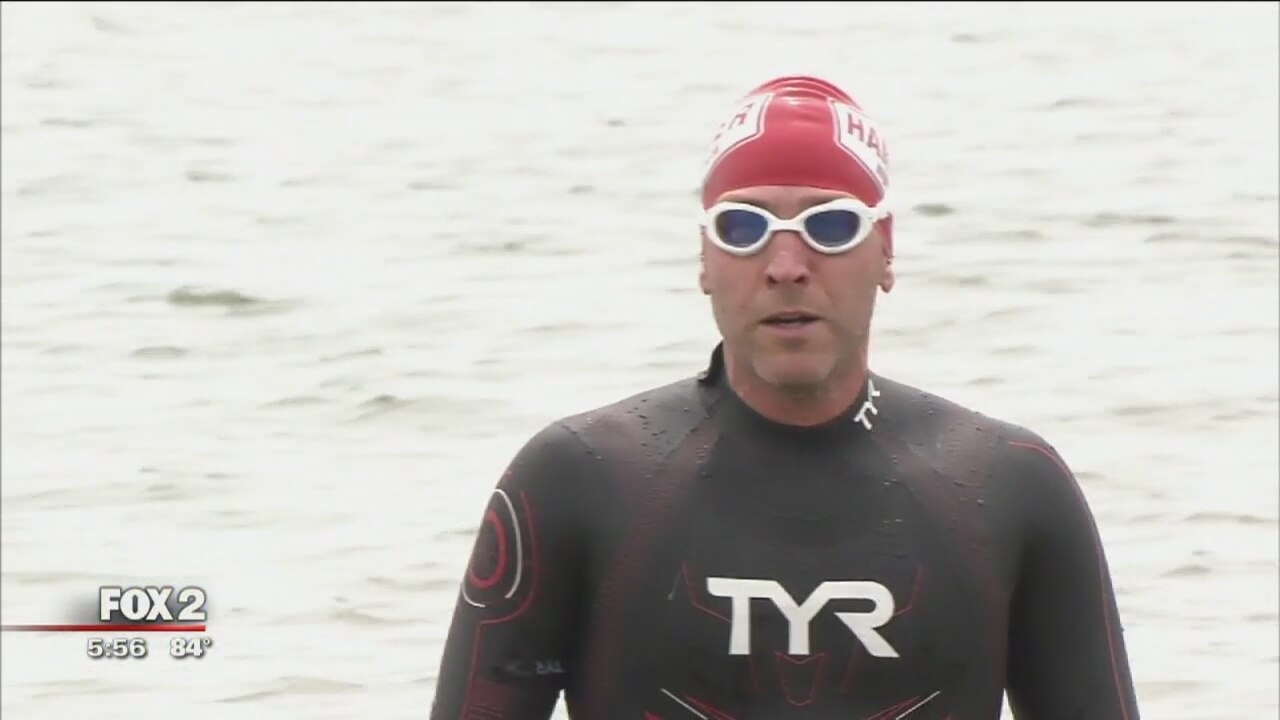 A Detroit man is training to set a world record for the fastest north-to-south swim in a Canadian lake. He's doing it to help his aunt fight a debilitating disease.
