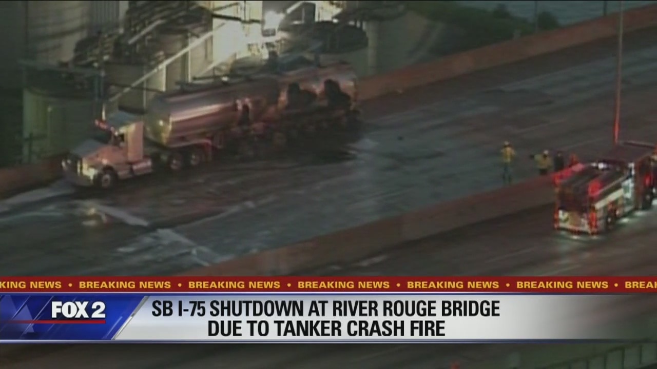 Tanker fire on I-75 bridge in Detroit shuts down freeway
